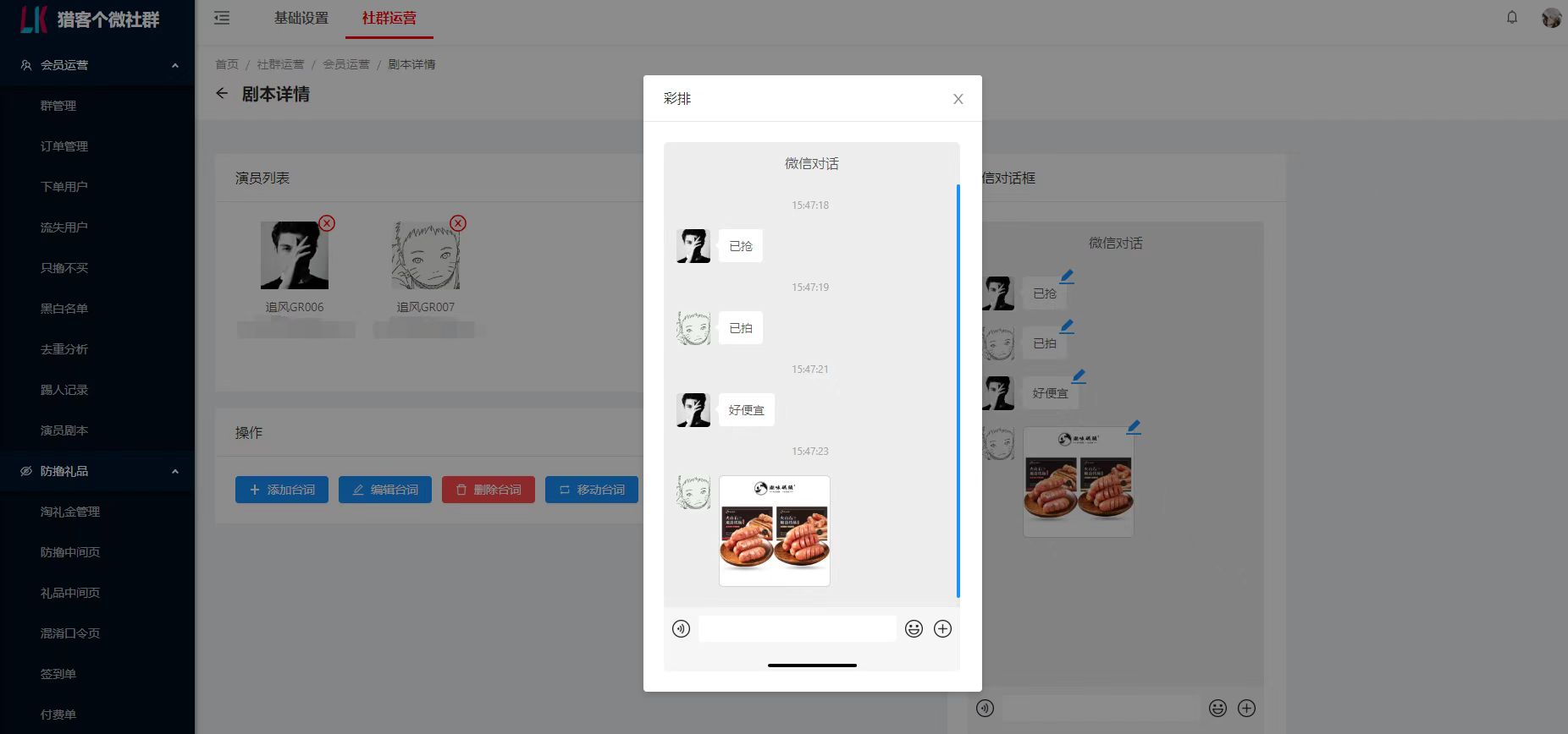 1、钉钉云通知新增联盟过期通知(提前三天)。 2、社群运营-演员剧本上线。支持可视化编辑和剧本彩排。 3、社群运营-会员运营支持进群退群排序。 4、社群运营-订单管理支持搜索指定群订单。 5、修复踢人记录昵称搜索bug。 6、修复群员管理-刷新群成员后在群人数未更新bug 7、优化设置主群功能。 8、修复创建礼金-优惠券有效期显示问题。